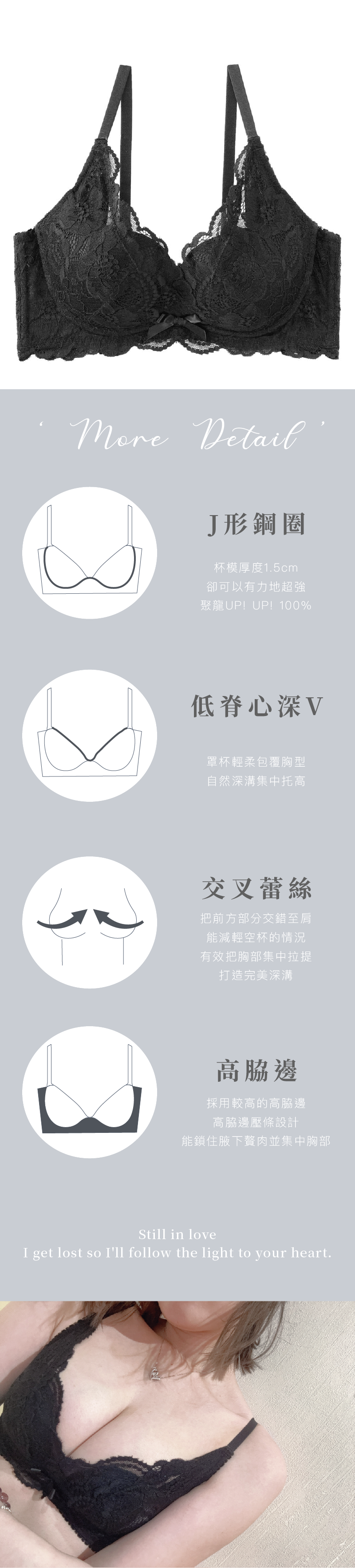 採用了蕾絲則由罩杯覆蓋至肩帶部分 達到拉提的作用
