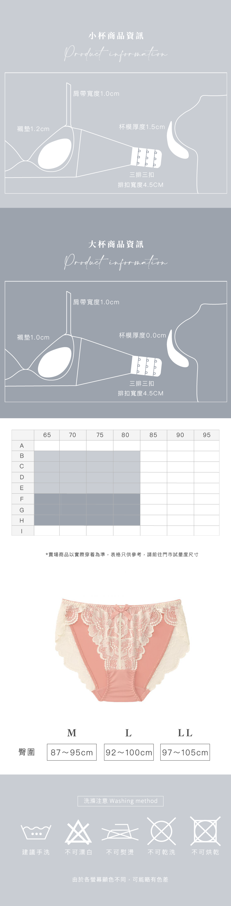 ⋄ 日本內衣模型+下圍 與 台灣模型+下圍 有誤差